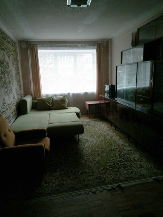 2-х кімнатна "хрущовка" з суміжними кімнатами (вагончиком), меблями та побутовими приладами (холодильник, пралька, пилосос) від власника на довгострокову оренду (не менше 11 місяців). 3 поверх 5 поверхового цегляного будинку. Кімнати - 16,5 м та 13 м. Кухня - 5,5 м. Вода цілодобово, гаряча вода навіть під час блекауту (газова колонка без електронікі). Квартира скромна з "бабусеним ремонтом", але чиста, тепла, охайна. Метало-пластикові вікна, виходять в тихе подвір'я. Балкон незасклений. Санвузол та ванна окремо. В кожній кімнаті по 2-ох спальному розкладному дивану. У квартирі облаштоване одне повноцінне робоче місце - письмовий стіл + офісне крісло.