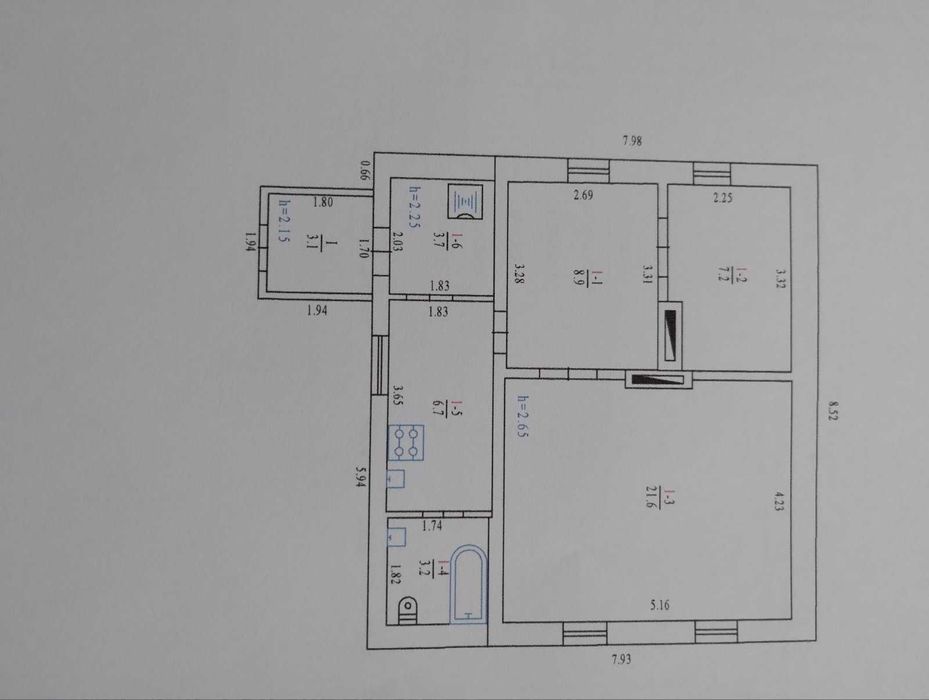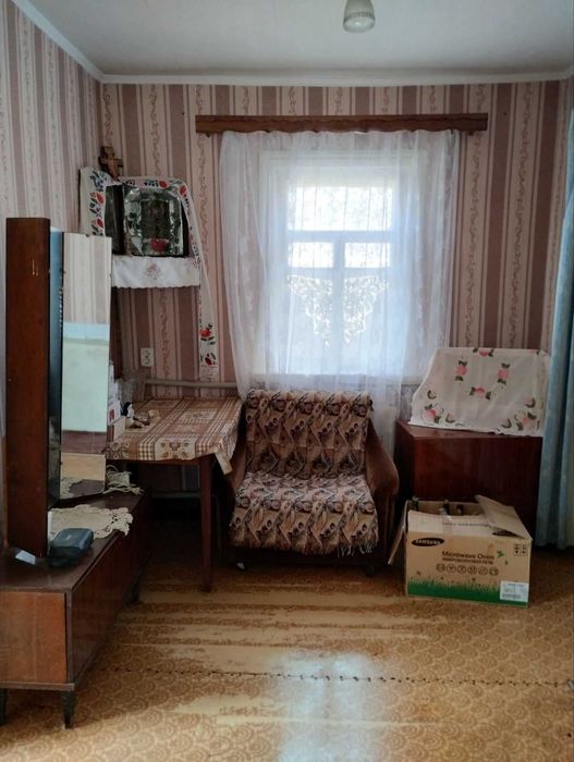 Будинок 3-кімнатний (2 кімнати роздільні, одна прохідна): спальня 7.2 кв. м., зала 21.6 кв. м.. прохідна 8.9 кв. м, висота стелі 2.65 м, також кухня, санвузол, 2 тамбура. Із комунікацій є все необхідне: світло, газ, автономне опалення (сучасний котел), водопровід (раніше також була скважина та є колодязь), каналізація-септик з подвійним переливом (дозволяє викачувати не частіше 1 разу на рік), був підключений Укртелеком-телефон з DSL-інтернетом, але на вулиці давно вже є оптоволокно.