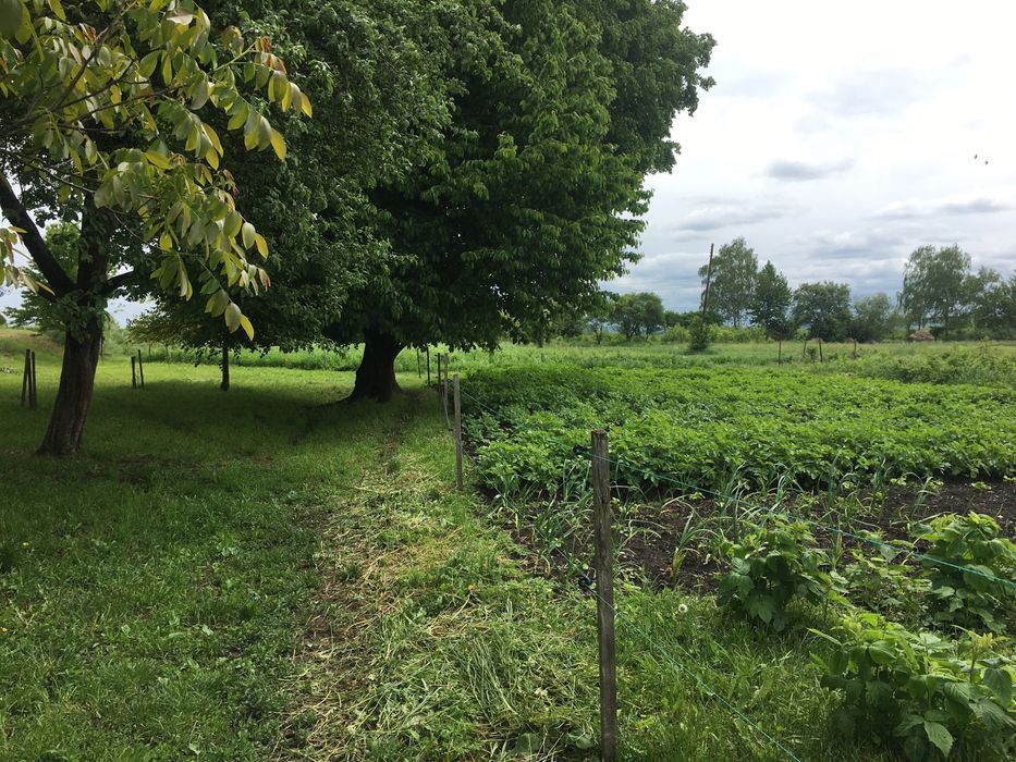 Посаджений молодий сад, малина, лохина.