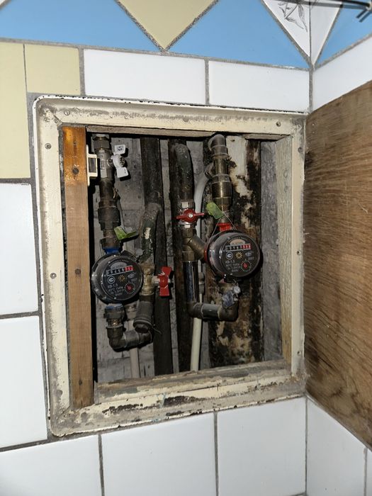 туалет і ванна не сумісні, лічильники в ванній холодна, гаряча.Туалет також лічильник стоїть.Всі меблі і техніка що на фото залишаються.