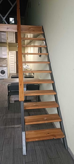 На другому ярусі повноцінна кровать зі шкафом та тумбами, можна додатково відокремити цю зону, а також донаростити поверх.