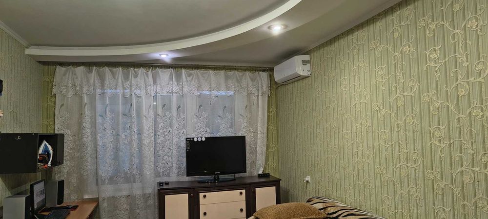 Продаж однокімнатної квартири в Синельникове; Продається однокімнатна квартира у місті Синельникове, вул Миру, 18. Загальна площа 34,4. Не кутова, на четвертому поверсі п’ятиповерхівки. Квартира суха та тепла. Металопластикові вікна. Кондиціонер. Домофон. Замінено електропроводку, водяні та каналізаційні труби, сантехніку. На все є лічильники. Засклений шестиметровий балкон. Поряд парк, озеро, школа, дитячий садочок, лікарня, АТБ та інші крамниці.