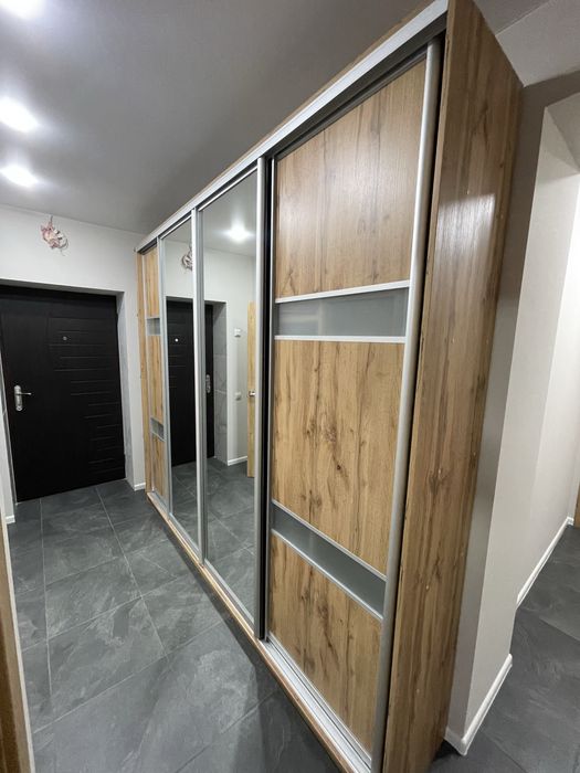 • Велика вбудована шафа‑купе в коридорі з дзеркальними фасадами.