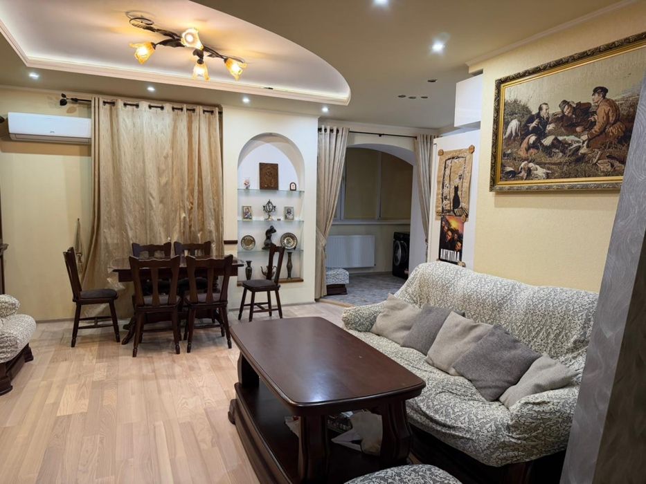 Продам квартиру з ремонтом район Казбет; Продам без посередників простору з якісним дорогим ремонтом 3-кімнатну квартиру, з меблями та технікою в цегляному, утепленому будинку із власною котельнею. Мінімальні комунальні платежі, дуже тепла та затишна. В квартирі є два кондиціонери, вбудована посудомийна машина, холодильник, морозильна камера, два телевізори, пральна машина, система очистки та мінералізації води, охоронна сигналізація, на підлозі паркетна дошка та керамічна плитка, міжкімнатні двері з натурального дерева, два види гарячого водопостачання: від котельні та бойлер. Квартира продається з підвальною коморою, яку можна використовувати як сховище. До пляжу «Казбетський» 5 хв пішки. Детально по телефону.