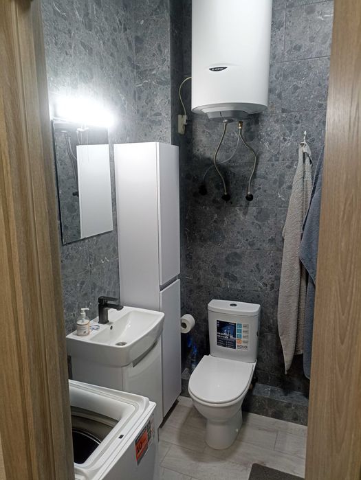Новая мебель и техника. Телевизор, ТВ тумба, бойлер, стиральная машина, диван, большой шкаф, 2-спальная кровать с матрацем, застекленная лоджия, на полу плитка, антидроновая!! сторона, вид с окна на спуск Ковалевского! В комплексе имеется генератор! Выход с этажа в паркинг (убежище)!.