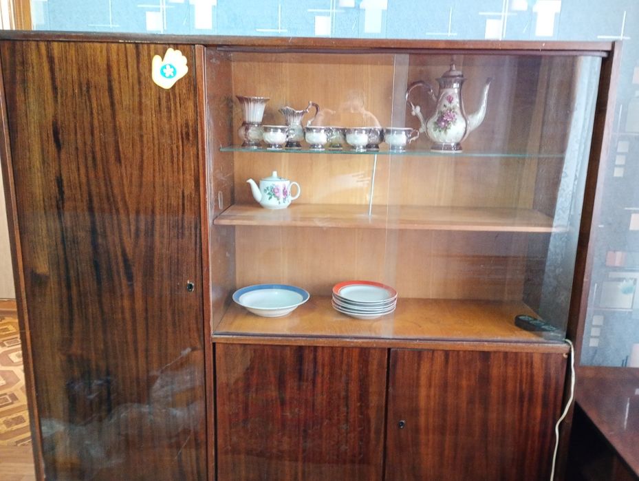 Есть кондиционер,стиральная машина,шкаф для одежды,сервант,тумбочка под телевизор, письменный стол,стулья,пылесос.