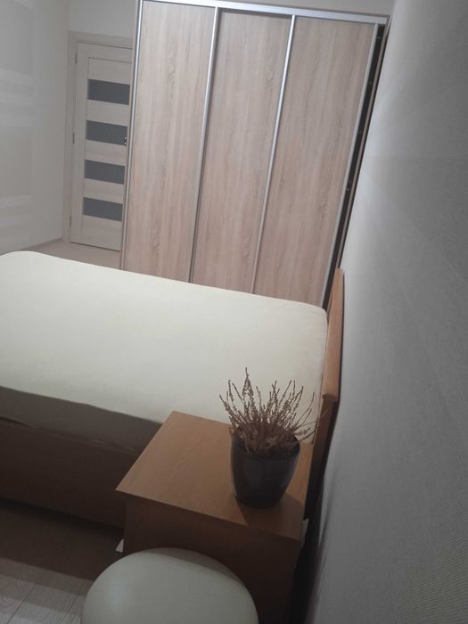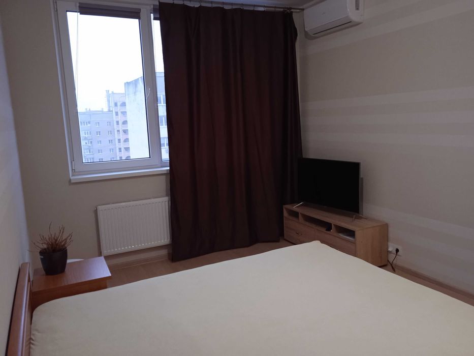 Комната: двуспальная деревянная кровать с ортопедическим матрасом, шкаф-купе, телевизор (Smart TV), Интернет, кондиционер. Есть место, чтобы доставить стол, кресло .