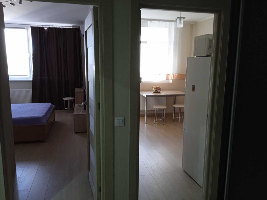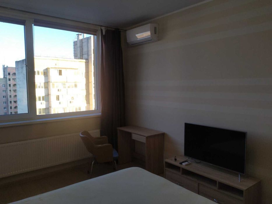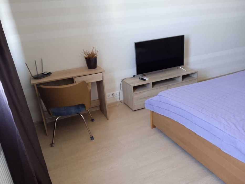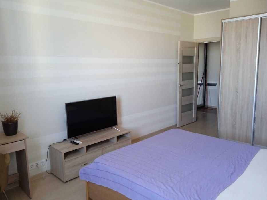 Комната: двуспальная деревянная кровать с ортопедическим матрасом, шкаф-купе, стол, кресло , телевизор (Smart TV), Интернет, кондиционер.