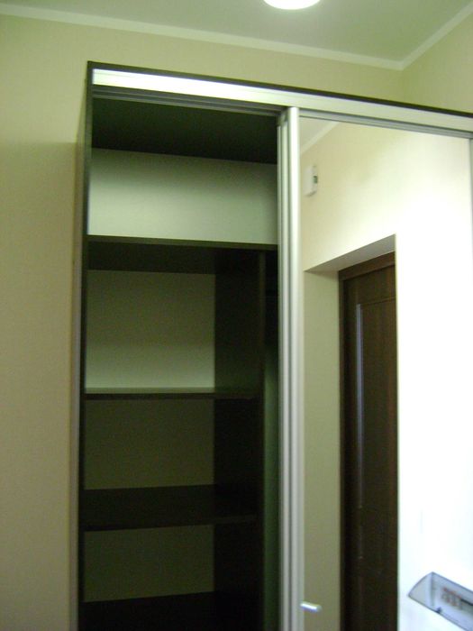 Прихожая: шкаф-купе с зеркалом, вешалка.