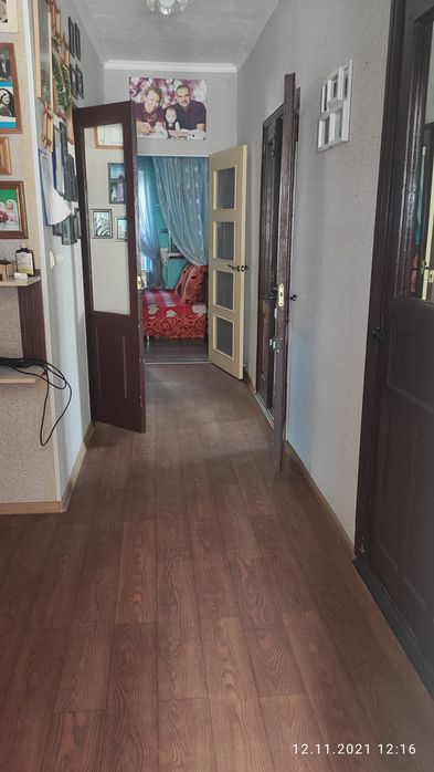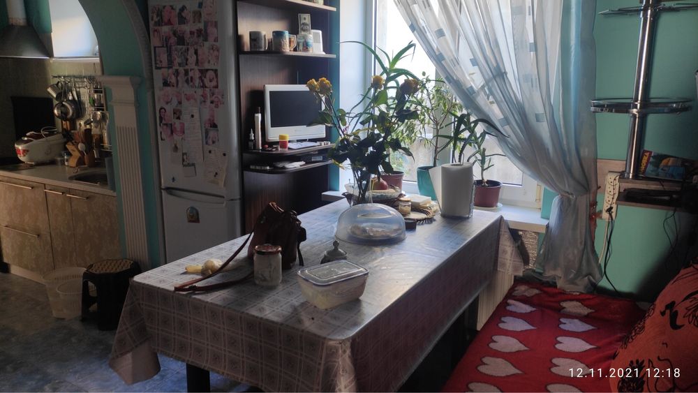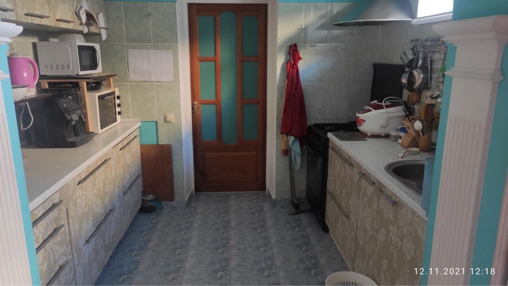 Кухня-столовая-проходная(мебель на заказ встроенная)есть место под посудомоющую машину.