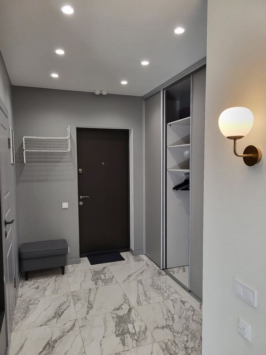 У квартирі зручне велике двоспальне ліжко з ортопедичним матрацом 160×200 см, продумана та містка система зберігання: два просторих вбудованих шафи в передпокої та кімнаті. Великі панорамні вікна від підлоги до стелі, приємний вид на тихий закритий двір, затишний балкон. Штори блекаут.