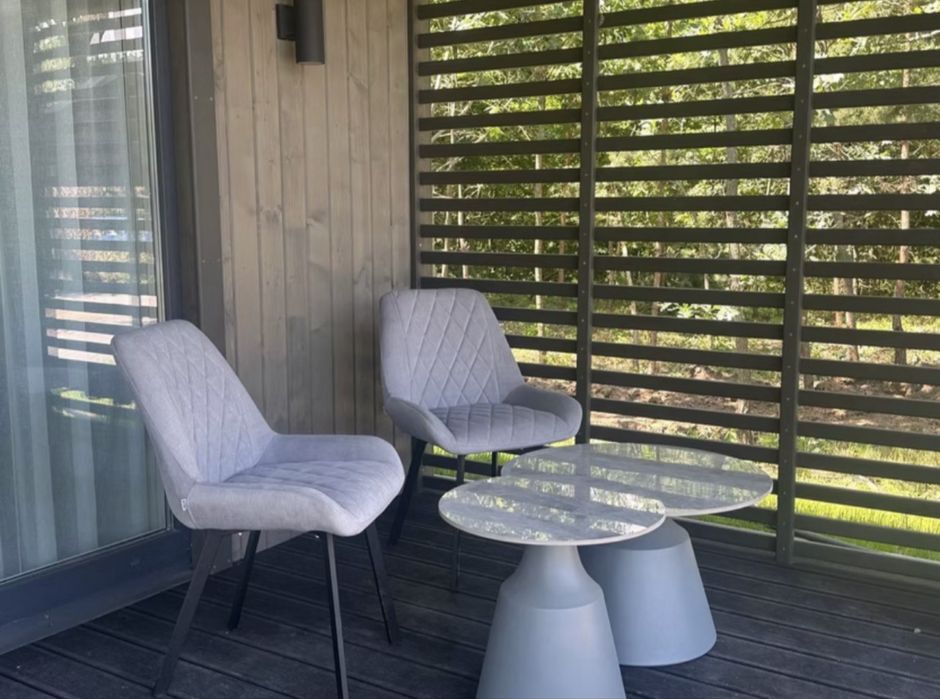 Також на території є комфортний скляний будиночок з мангалом, де ви можете відпочити з друзями зі смачними стравами на мангалі за великим столом!