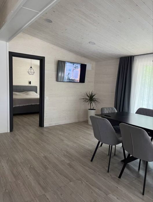 Трьох кімнатний номер (72м²), з яких дві спальні з ліжками 180*200 см, кухня-студія з плитою та столом на 10 персон, санвузол з біде, ТV, Інтернет