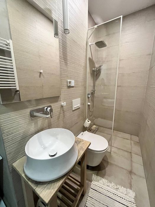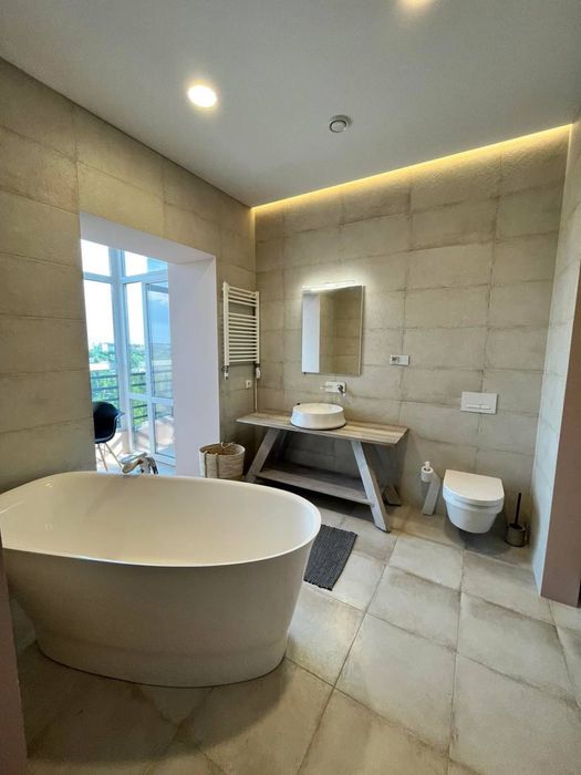 Квартира облаштована добротною сантехнікою, на вікнах - москітні сітки та ролети. Меблі та оздоблювальні матеріали винятково якісні та дбайливо підібрані.