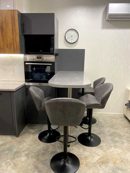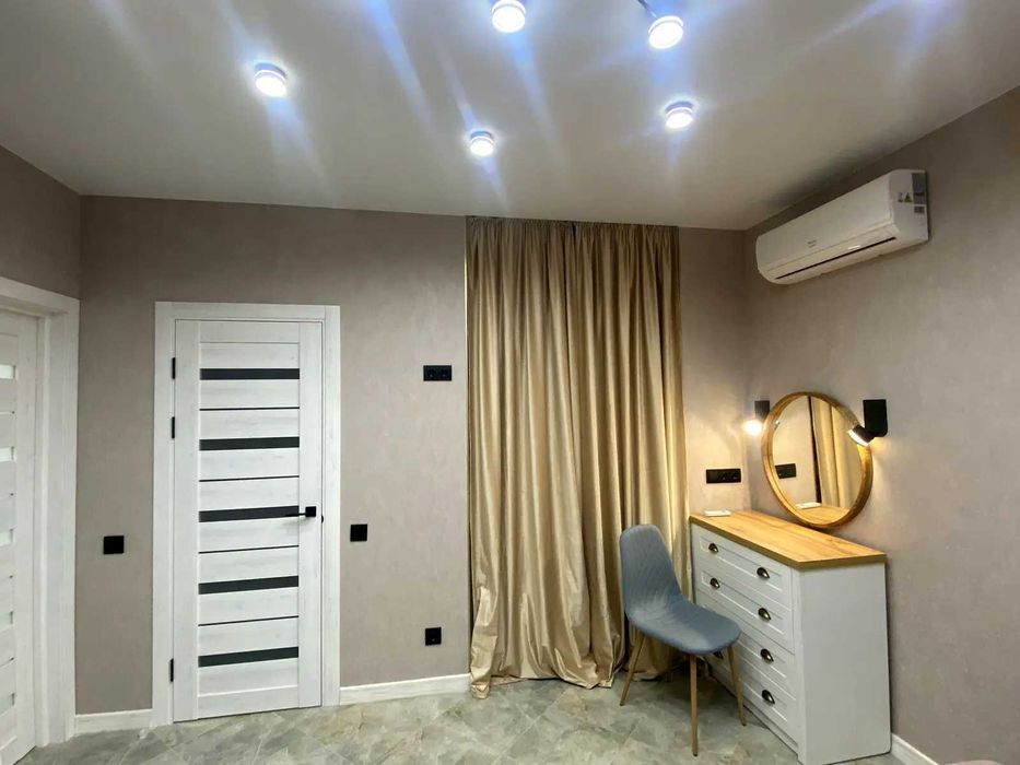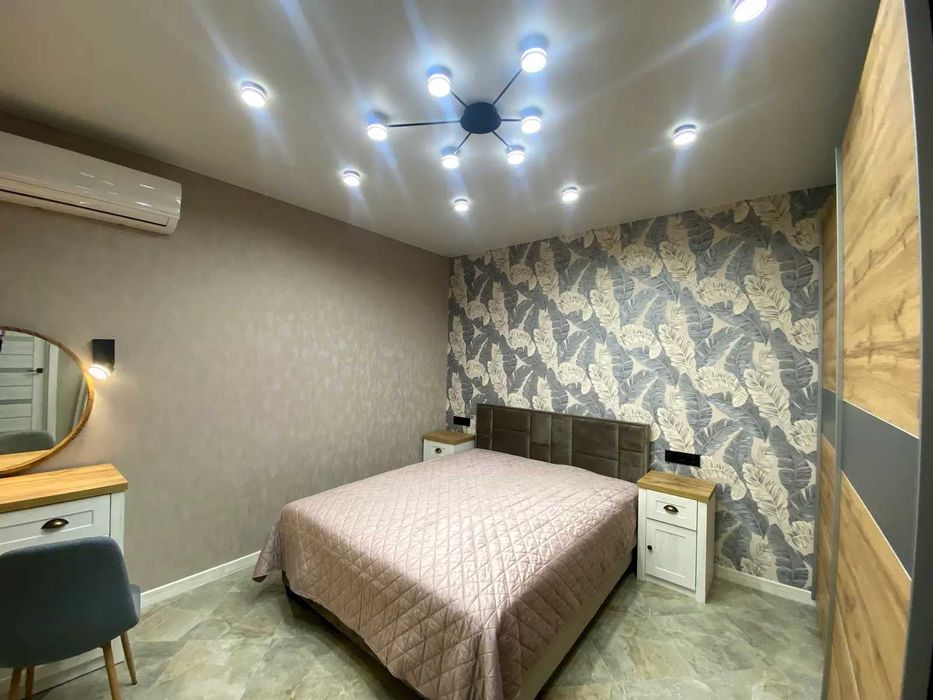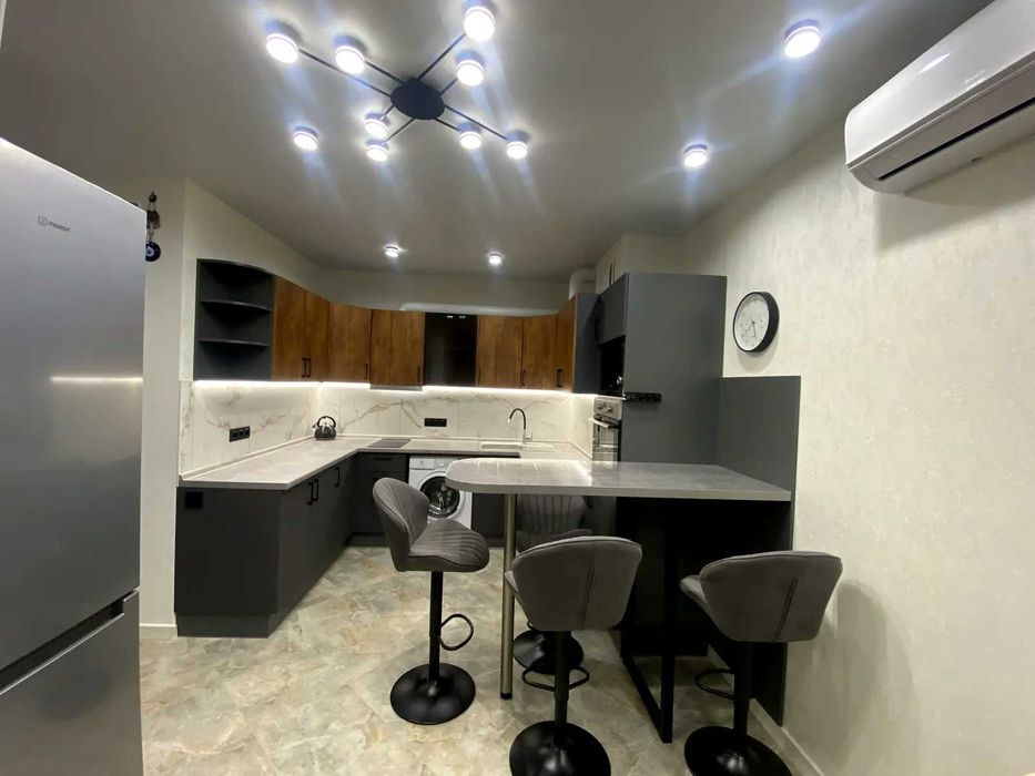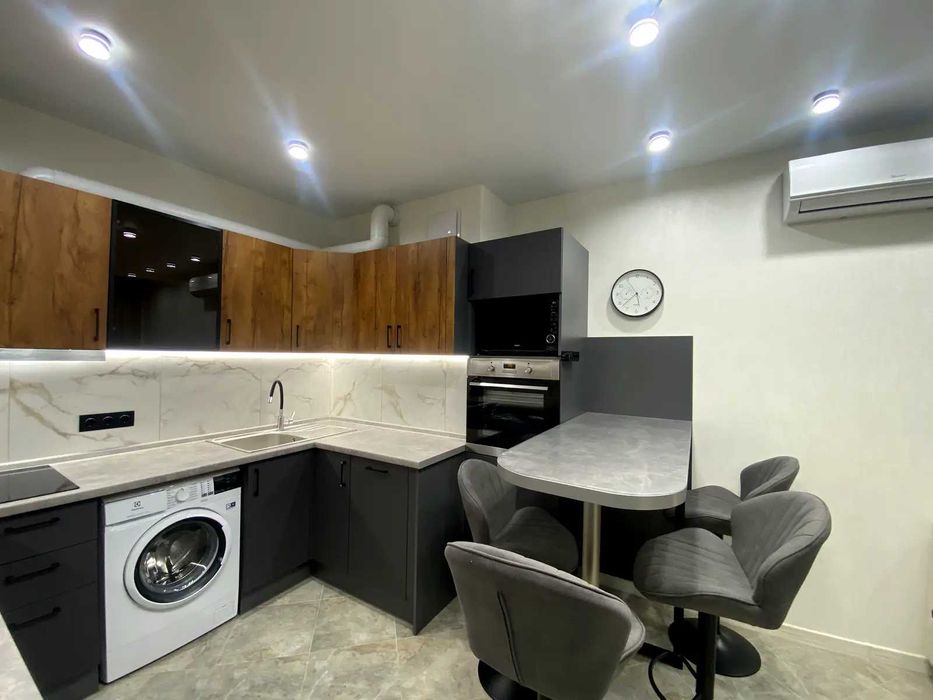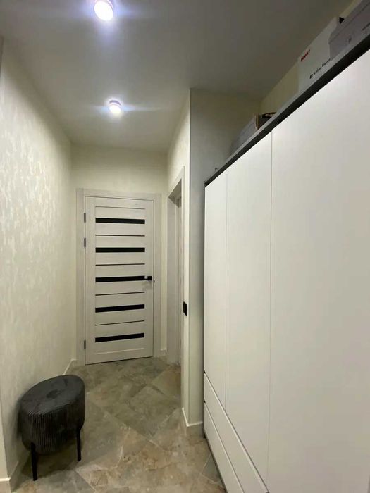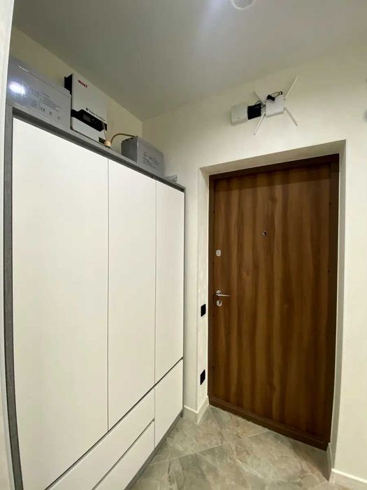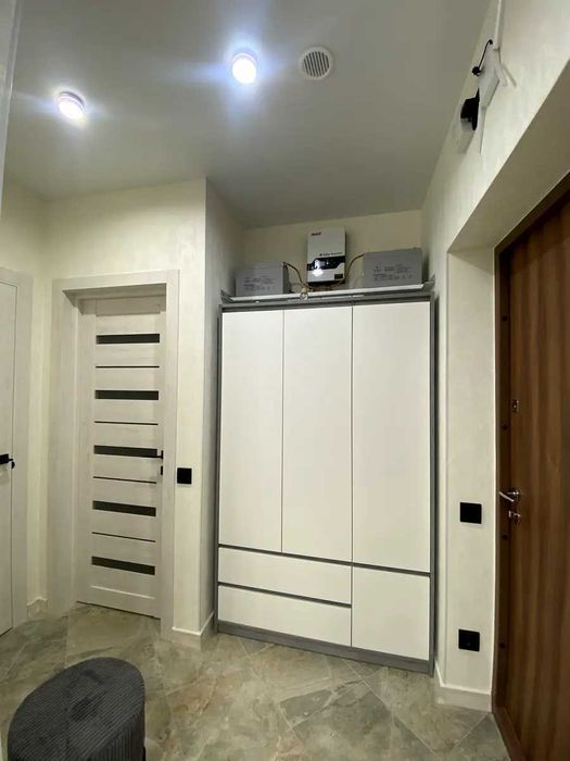 проспект Європейського Союзу (Правди), 49. Квартира має відмінне планування: кузня-вітальня, окрема спальня, невеличка гардеробна кімната, коридор, сумісний санвузол. Всі стильні меблі: вбудовані кухонні меблі, обідня зона (стійка), зручні стільці, диван, шафа, двоспальне ліжко, приліжкові тумби, шафа-купе, та інше. Повна комплектація побутовою технікою: інвертор з акумуляторами, два кондиціонера, варильна поверхня, духова шафа, витяжка, мікрохвильова піч, посудомийна машина, холодильник, телевізор, пральна машина, бойлер 80л та інше.