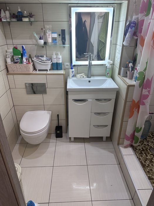 навісний унітаз, велика душова кабіна