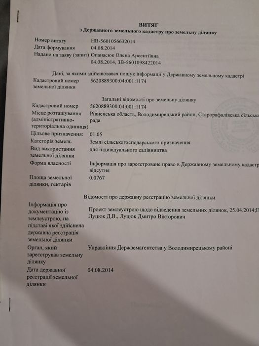 Земельна ділянка 0.076 га; Земля сільськогосподарського