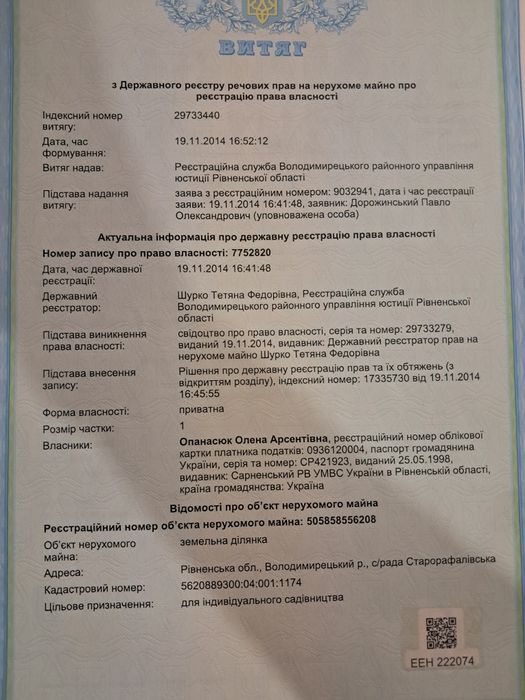| Земельна ділянка: |