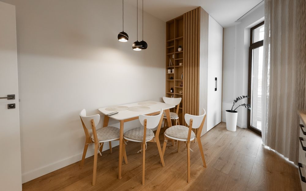 В квартирі зроблений якісний сучасний ремонт .