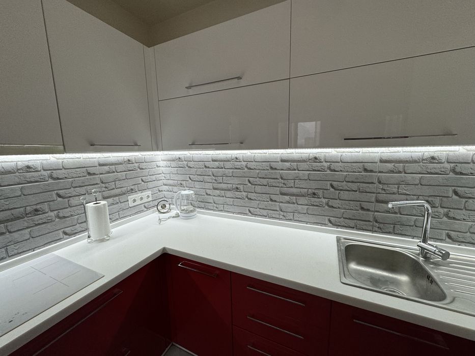 В квартирі є вся необхідна побутова техніка(мікрохвильова піч, посудомийка, духовка, праска, бойлер і тд), посуд, кухонне приладдя.