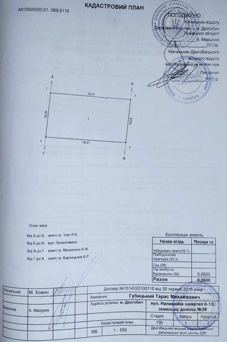 Площа: 0,06 га