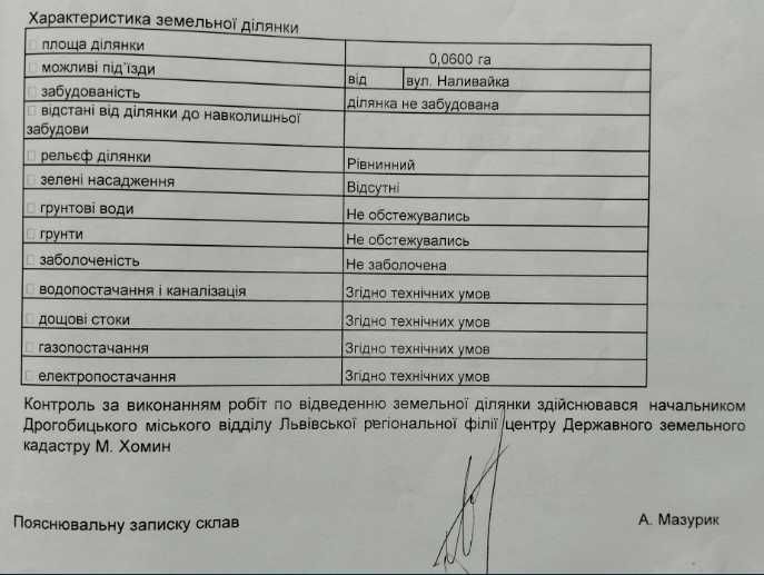 Земельна ділянка по вул. Наливайка; Пропонується до продажу земельна ділянка площею 0,06 га у м. Дрогобич, на вул. Наливайка.