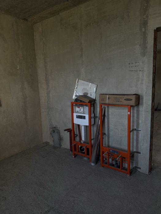 Встановлено потужний двохконтцрний котел розводка всієї сантехніки, та встановлено інсталяції, і трап для душових зон, чистова стяжка (мокра), вікна рехау 3 скла товщина склопакету 4см