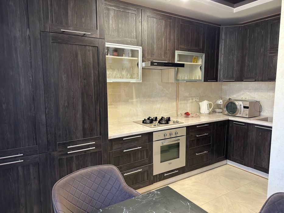 Оренда трьох кімнатної квартири; Здається 3-х кімнатна квартира студія загальною площею 80 кв.м. по вул. Стуса 28, навпроти Арсену. В дуже хорошому районі із усіма зручностями. Квартира обладнана всіма меблями і технікою. Ідеально підходить для сімʼї з дітьми.