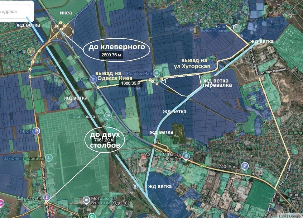 дорога выходит на Киевскую трассу ( Каплычка, Порто Франко ) с одной стороны и