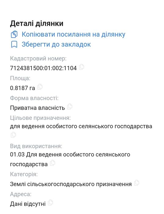 | Земельна ділянка: |