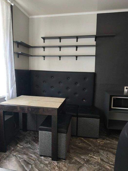 Функціональна кухня також з красивим виглядом на місто. У кімнатах передбачені місця для зберігання – місткі шафи.