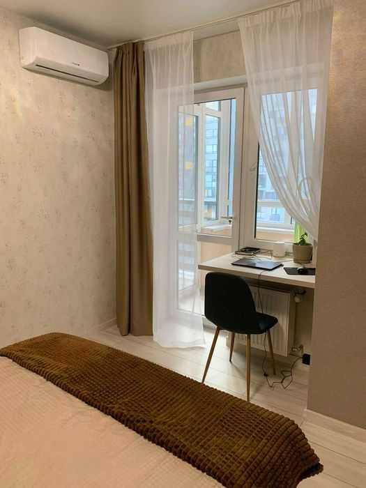 Квартира повністю мебльована та готова до проживання. До метро «Шулявська» — близько 15 хвилин пішки, поряд зупинка громадського транспорту. На території комплексу працюють магазин, кафе та приватний дитячий садок.