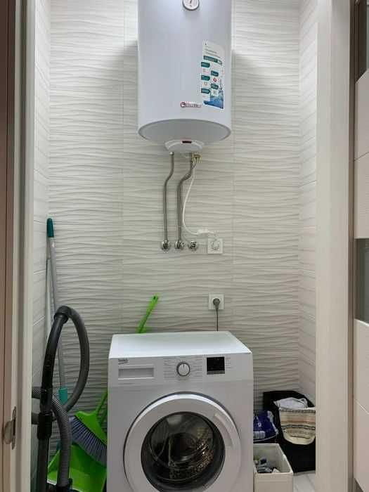 У квартирі є: двоспальне ліжко, диван, шафа-купе, два телевізори, два кондиціонери, бойлер, обідній стіл зі стільцями, робочий стіл. Санвузол з душовою кабіною, встановлена пральна машина-автомат. Є балкон-лоджія.
