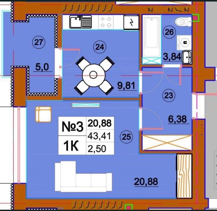 44 м2