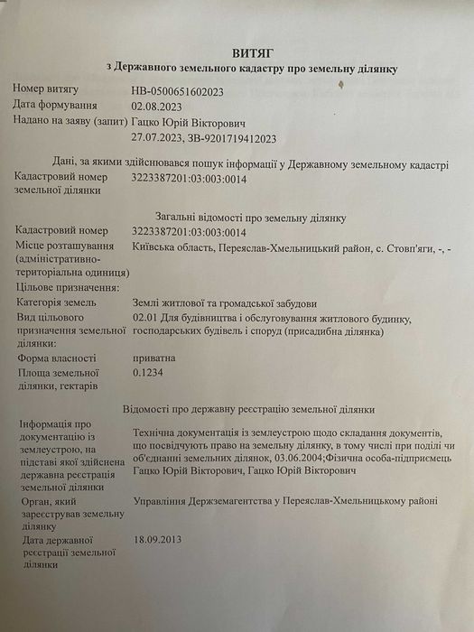 | Земельна ділянка: |