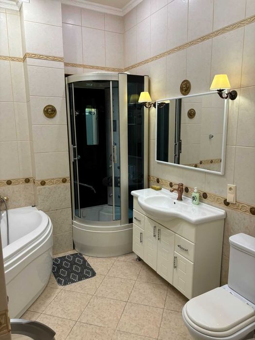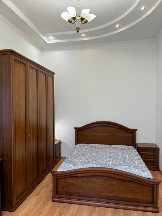 Дві спальні: одна з великим ліжком, шафою та тумбочками. друга з розкладним диваном. Простора вітальня з великим зручним диваном, телевізором, обідньою зоною на чотирьох осіб та великими вікнами. Кухня обладнана меблями та всією необхідною побутовою технікою ,посудом та столовими приборами. Є ванна та душова кабіна. Додаткові зручності:централізоване кондиціонування, WI-FI,фен, сейф, пральна машина, праска та прасувальна дошка, білизна та рушники. В квартирі централізоване опалення, також газова колонка. Без тварин.