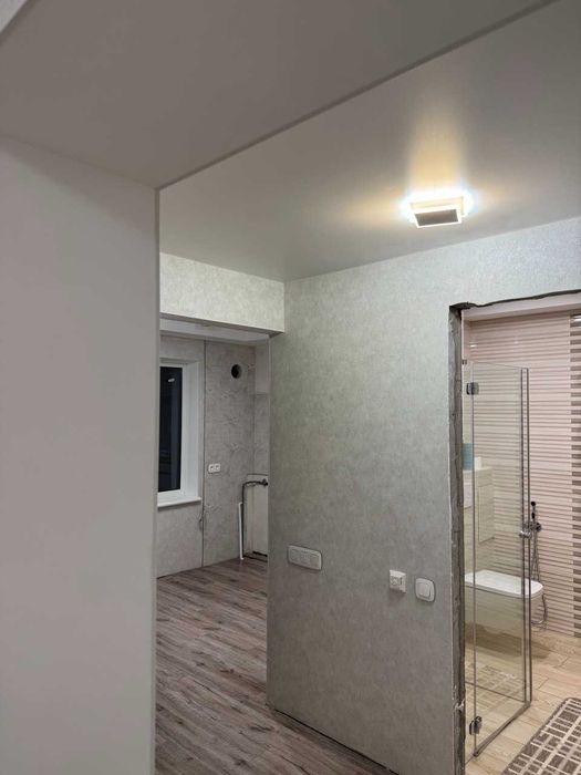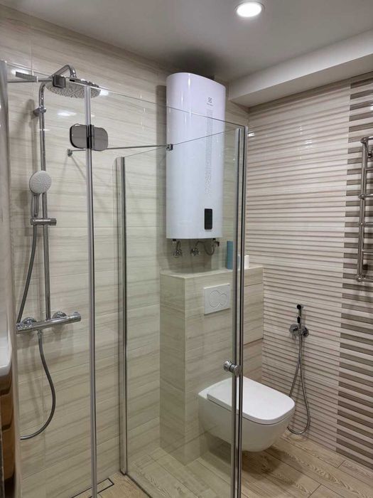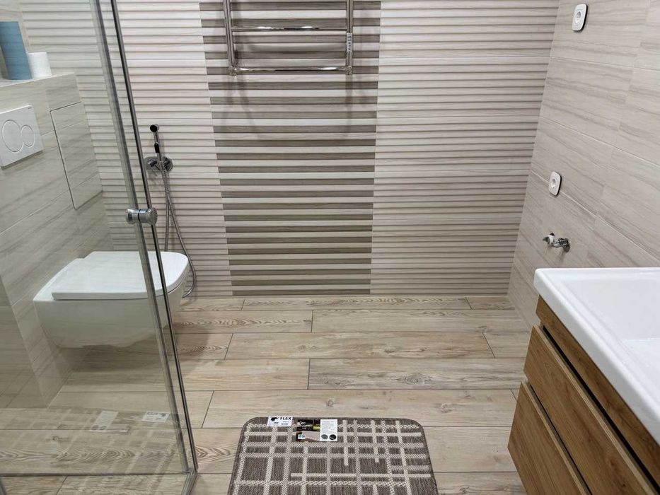 Підлога з вологостійкого ламінату та в один рівень по всій квартирі, санвузол з теплою підлогою, наявність бойлеру та насосу для підвищення тиску води за потреби.