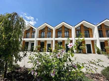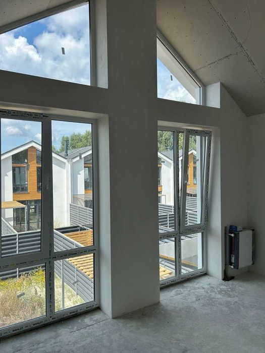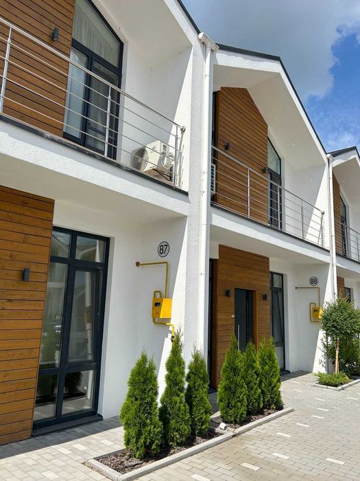 Таунхаус має два поверхи. Панорамні вікна. Місце для паркування авто. Власне подвір'я.