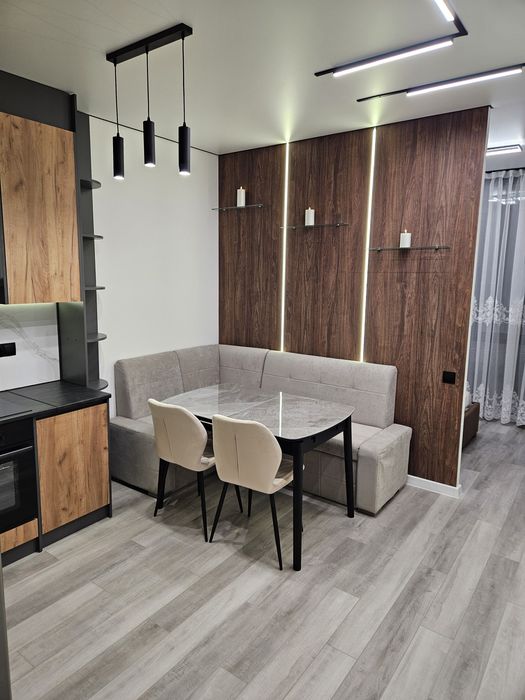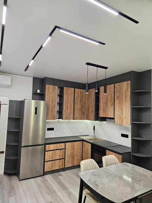 Дороге комбіноване освітлення (трекове Світло, підвісне освітлення, освітлення стінових панель, кухоного гарнітуру, Бра, смарт люстри із пультом керування.