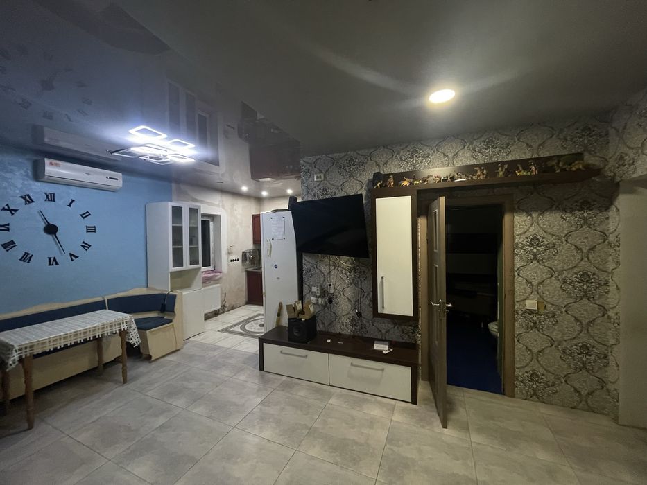 Здам в оренду частину будинку в м. Буча по вулиці Яблунська.; Будинок має зал, дві кімнати, два санвузла, кухню. Деякі зони без ремонту, або з недоробленими частинами, однак функціонал весь доступний. Основна кімнатп поєднана з кухнею, має великий диван, обідня зона, смарт-телевізор, саббуфер. На кухні газова плита, газовий котел на автономне опалення та водонагрів, два холодильники та додаткова морозильна камера. Також встановлений фільтр на питну воду.