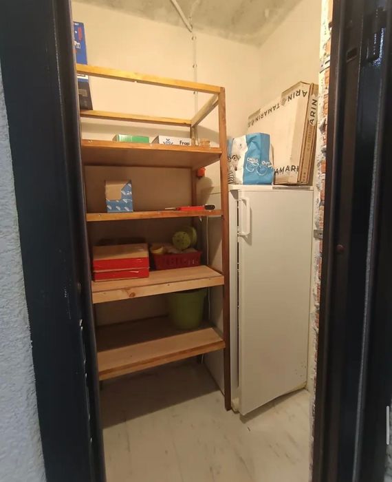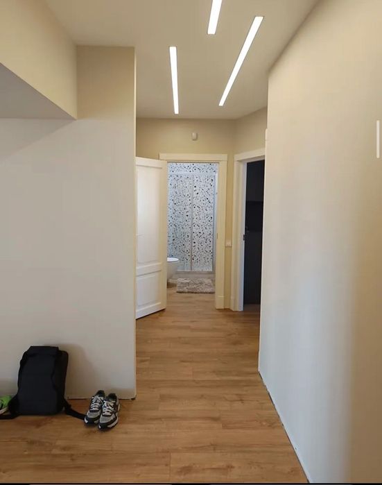 В кінці коридору змонтована велика ніша під вбудовану шафу для сезонного одягу .