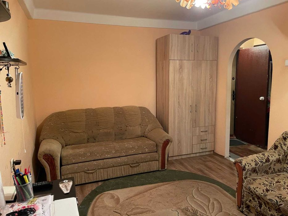Загальна площа квартири 28,5кв.м, кімната 15кв.м, з кімнати вихід на балкон, кухня 6кв.м, кладовка, санвузол суміжний