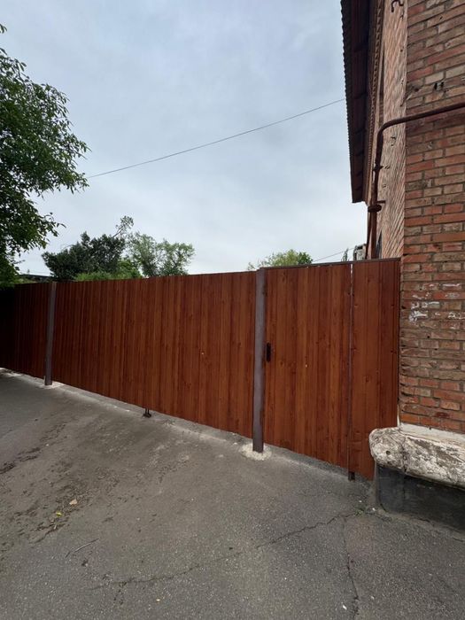 Окремий доглянутий двір, обгороджений парканом.