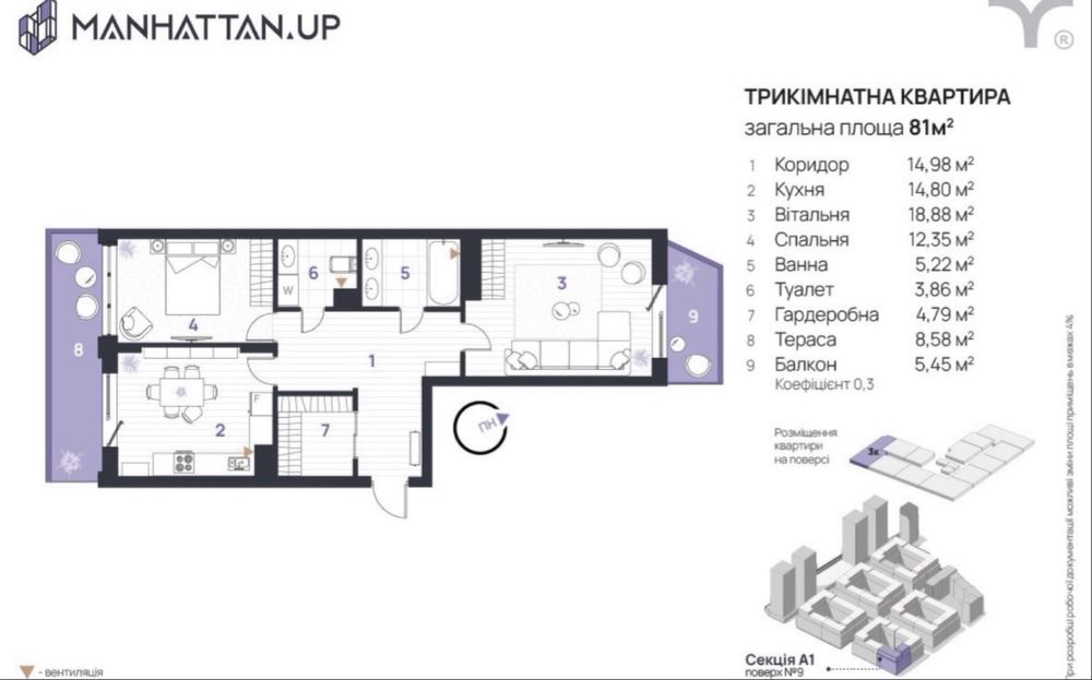 Квартира. 3 кім. 76 квм ЖК Manhattan up ВЛАСНИК; Продається затишна квартира в сучасному житловому комплексі “Манхеттен” в Івано-Франківську. Будинок розташований у чудовій локації з розвиненою інфраструктурою: за кілька хвилин пішки знаходяться ТЦ “Арсен”, “Епіцентр”, зупинка громадського транспорту, кав’ярні, аптеки, школи та дитячі садочки. До центру міста — приблизно 10–12 хвилин на авто або 20–25 хвилин пішки.