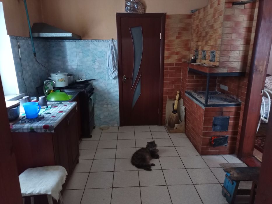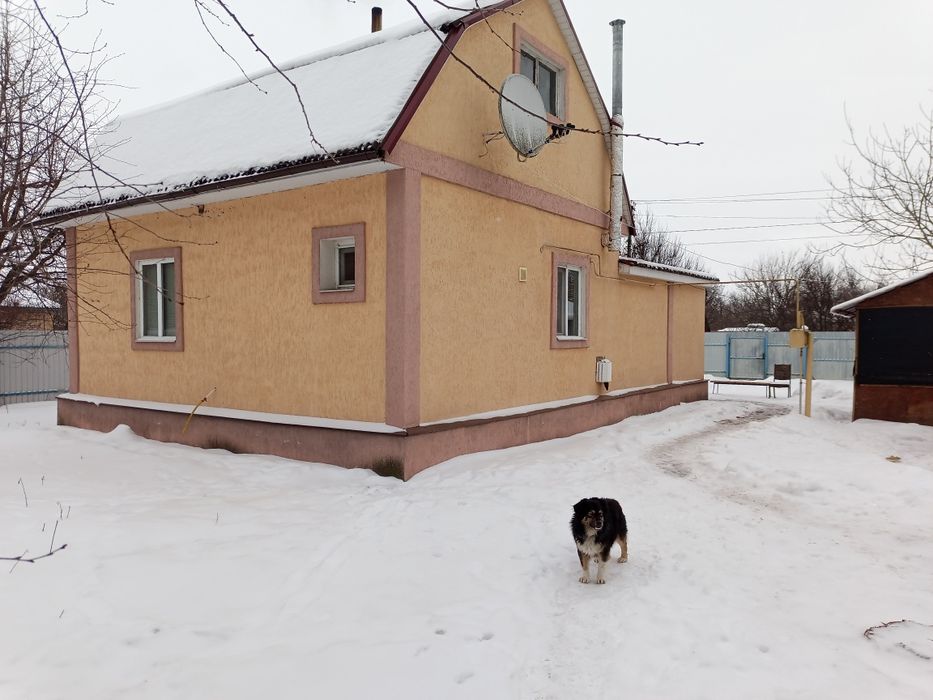 Цегляний,поштукатурений короїдом і з середини обшитий гіпсокартоном.Побудований у 2013 році.Має теплу грубку і газовий котел з радіаторами.Є мансарда,можливість створення літньої кімнати.Ванна і туалет у будинку.Кухня з газовою плитою.Зроблені дві веранди,двері не обмерзають.На території сарай,погреб,альтанка,місце для автомобіля,літній туалет,сад,город.