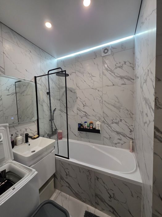 остается почти вся мебель и техника, автономное газовое отопление, большая лоджия соединена с комнатой. Инфраструктура - школа, садик, супермаркет, торговый центр, кинотеатр, салоны красоты, базар, аптека и т.д. Квартира достойна вашего внимания, звоните 09******34