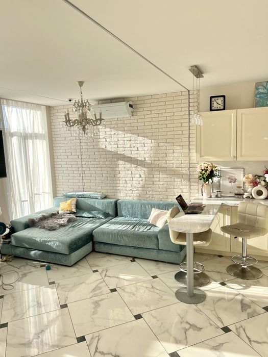 На першому поверсі кухня -студія з видовою терасою 25 метрів, високі стелі (друге світло). Обладнана сучасною технікою, теплими полами, та всім необхідним для комфортного життя.