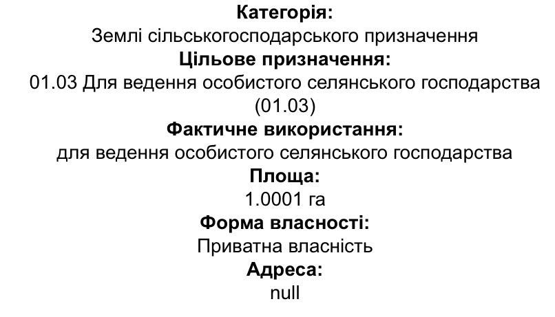 | Земельна ділянка: |