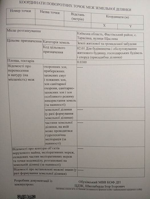 | Земельна ділянка: |