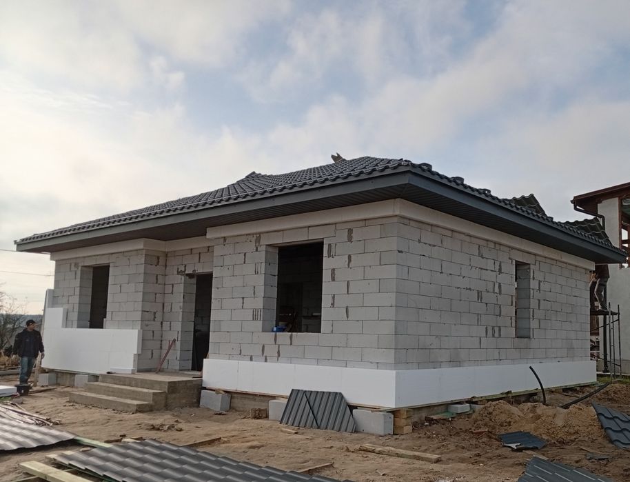 Побудований з газоблоку 300мм./D500, утеплений 100мм. пінопластом.